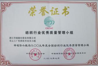 8月,华峰氨纶东山工厂机修QC小组凭借“降低韩国产SSW-12B型卷绕机故障率”的申报课题,被中国纺织工业协会评为“2009年度全国纺织行业优秀质量管理小组”称号。