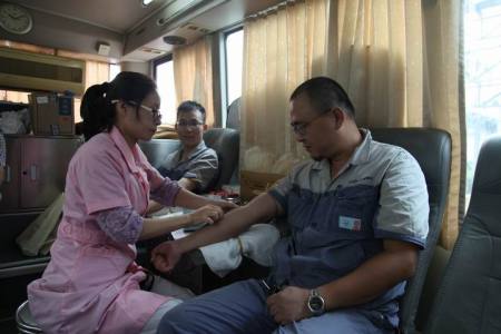 献血办的采血车一到,填表、验血、体检、抽血等随即有序展开。徐宁副总经理等公司高管带头参与,用自己的实际行动展现了他们的无私奉献。值得一提的是,来自机修C班组会晕血的薛介锋同志克服自己的心理矛盾毅然参加献血;来自电仪E班组的杨波同志已经先后有八次参加义务献血经历,奉献了2300ML的热血。所有献血者在拔除针头后,都放弃了休息,立即奔赴各自的工作岗位,继续投入到紧张的工作中。