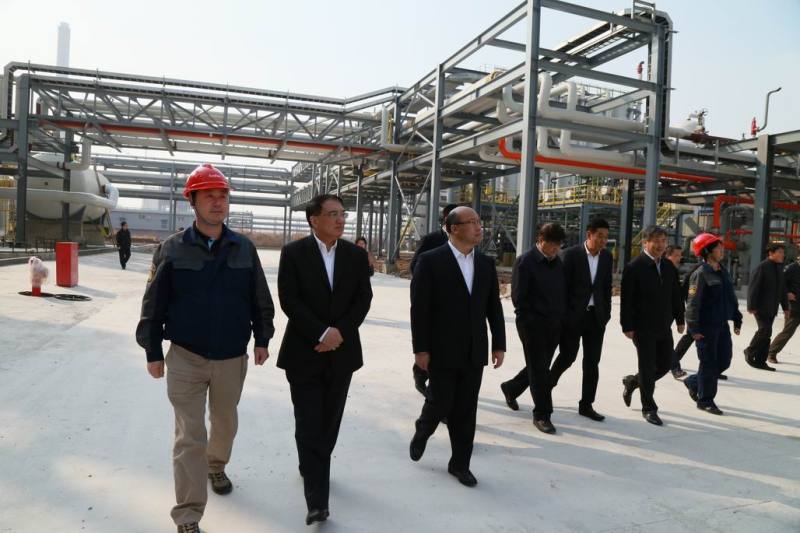 王珉书记一行深入到12万吨环己酮项目现场,参观已建成的各个生产装置,并就项目情况与杨从登董事长做了亲切交谈。杨董从环己酮生产工艺流程、原料供应、产品销售市场以及未来产业链拓展方面向王书记作了详细汇报。交谈中,王书记高度赞许了华峰致力于将化工产业做大做深的目标,并与杨董分享了大连市长兴岛石化项目成功的投资建设经验,期望辽宁华峰化工尽早投产创效,建立现代化企业制度,依托当地资源,利用自身优势,突破关键技术,深化产业链,提高产业丰厚度。