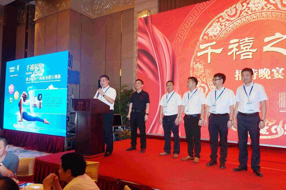 会议期间,华峰氨纶公司承办了“千禧之夜”招待晚宴,总经理潘基础发表了热情洋溢的致辞,公司与会人员同客户进行了广泛交流。在技术交流会现场,公司总经理潘基础为获得2015年“宗平生针织基金会”优秀论文的代表颁奖,公司副总经理杨晓印作了技术交流专题报告,并就华峰氨纶的发展战略、产品特色与技术发展等内容向与会人员作了全面介绍,增进了客户和业内专家对华峰氨纶的了解,扩大了“千禧”氨纶的品牌知名度。