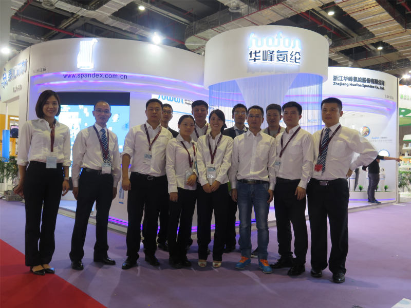 作为氨纶行业龙头企业,华峰氨纶目前生产规模位居国内第一,世界第二,公司高度重视展会在品牌宣传和产品推广中发挥的作用。此次参展,展馆设计着重宣传公司“绿色、环保、创新”理念,重点推出以低温易粘合氨纶、纸尿裤用氨纶、酸性染料易染色氨纶、织带用氨纶以及细旦经编用氨纶为代表的新产品,同时扩大公司常规产品、功能型差异化产品以及概念型产品的影响力,吸引了众多客商眼球。