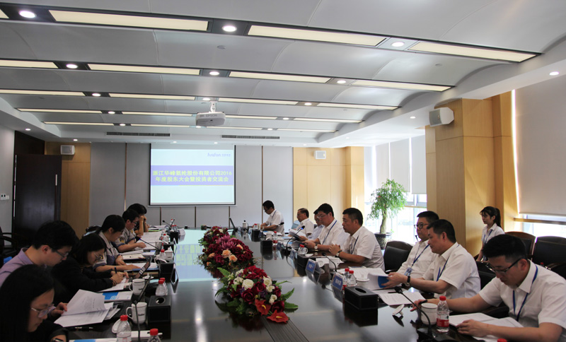 5月18日,华峰氨纶公司召开2016年度股东大会,公司股东、董事、监事和高管等出席会议,投资机构代表应邀参加会议。董事长杨从登主持会议,会议审议并通过了《2016年度董事会工作报告》、《2016年度利润分配预案》和《关于子公司投资建设90000t/a差别化氨纶项目的议案》等十项议案。