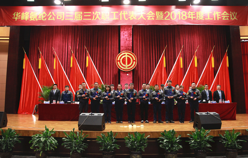 2月5日,华峰氨纶公司首届十位“千禧工匠”获得者走上颁奖会议主席台,分别从集团和氨纶公司领导手中接过奖杯。