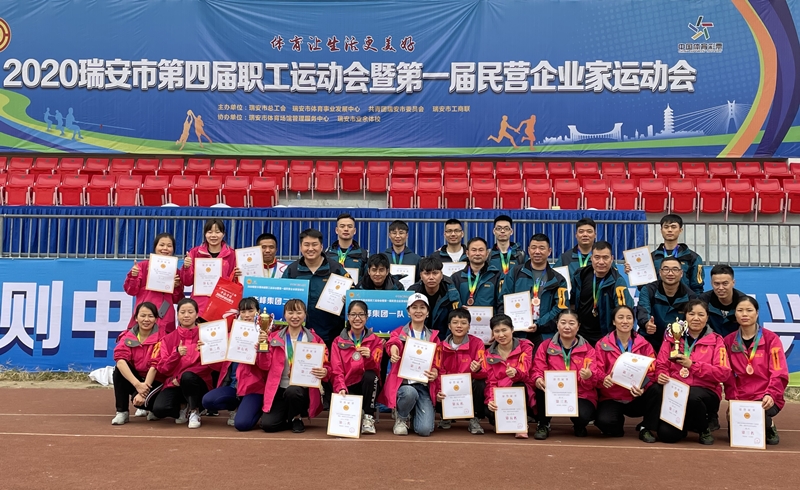 日前,为期两天的瑞安市第四届职工运动会暨第一届民营企业家运动会在瑞安市体育馆落下帷幕。华峰集团从瑞安基地各产业公司中选拔出57名精兵悍将,共组成3支代表队参加比赛,氨纶公司选送22名运动健将参与比赛。