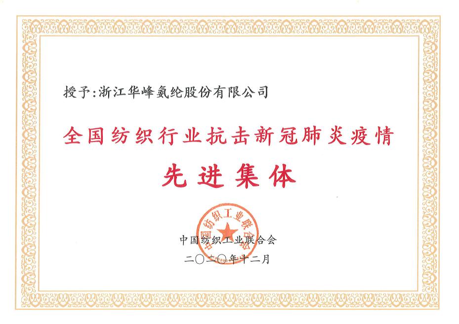 近日,中国纺织工业联合会就华峰化学公司(原华峰氨纶公司)在抗击新冠肺炎疫情中的杰出贡献,授予“全国纺织行业抗击新冠肺炎疫情先进集体”荣誉称号。