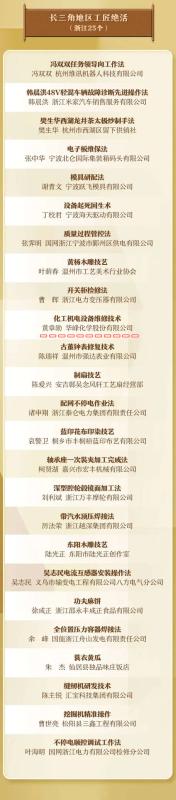 上海市宝武特种冶金有限公司压机首席操作工杨磊、江苏省国网江苏省电力有限公司检修分公司变电二次运检师陈昊、浙江省杭州汽轮机股份有限公司高级技师吴国林和安徽省送变电工程有限公司主任工程师、特高压项目经理王开库等三省一市共100名工匠入选了联盟首批入盟工匠名单。浙江省杭州维讯机器人科技有限公司工匠冯双双“任务导向工作法”等被列入长三角百项“工匠绝活”名册。浙江都有哪些能工巧匠以及工匠绝活入选?(转载自浙工之家)
