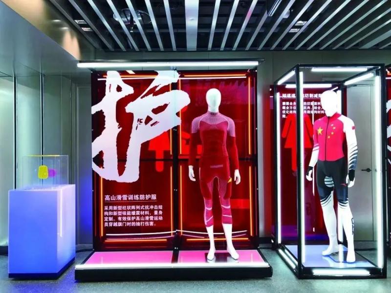 据介绍,“快”针对的是短道速滑、高山滑雪等竞速类项目比赛服的综合减阻问题。通过参考中国运动员体型特征、训练及比赛环境等,运用流体动力学仿真技术构建三维空气动力模型,科研团队设计减阻服装结构110余种,通过1000小时以上的风洞综合验证,定制符合中国运动员体型和技战术特点的“最佳运动姿态”比赛服。在这个过程中,科研团队将风洞引入竞技类比赛服研发,形成了系统化的研发思路。“护”涉及训练比赛过程中服装装备的保护性能。如短道速滑比赛服采用复合纱线技术,将两种性能的纱线复合,使得所织造的面料超强、超韧、超弹,具备防切割性能,面料防切割等级满足国际滑冰联盟(ISU)要求。“暖”是冬季项目的普遍需求。科研团队从新型保暖纤维研发、智能加热材料和技术两方面入手,突破了传统纤维直径难以细化的瓶颈,研发出独特的仿鹅绒微纳米分形结构,实现轻质保暖;研发了“堡垒”的综合保暖系统羽绒服,通过智能主动加热技术,实现高效保暖。“美”主要涉及技巧类项目比赛。如花样滑冰项目探索并融合多种服装高级定制元素,形成了适合中国的花样滑冰比赛服设计定制体系,提升了艺术表现力,充分展现了国家形象。