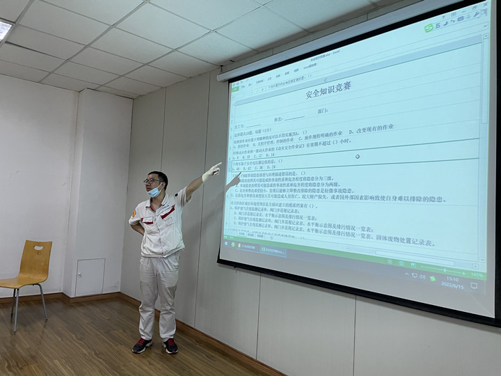 为全面提升员工安全知识,纺丝E开展安全知识竞赛活动,选题内容涵盖岗位安全知识、应急处置和隐患排查等方面。