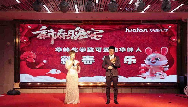 当晚,整场活动充满了温馨和欢乐,各个精彩节目轮番上演。留瑞驻岗人员相片展,让员工感受了众多华峰人留瑞过节的坚守;储备大学生表演的影子剧《我们来自五湖四海》,让大家在视听享受中感受到了华峰创业的力量;广泛采集并剪辑的《乡音》节目和亲人现场视频连线,浓浓的情感让异乡的同事产生了强烈的共鸣……除了丰富的自创节目外,公司还设置了各个充满创意的奖项,有为在场属兔员工颁发的“最美福兔奖”,有为来自上千公里外在华峰工作员工颁发的“最美奔兔奖”,也有为双职工颁发的“最美夫妻奖”,更有为连续两年获得A+绩效员工颁发的“绩效‘兔’出奖”。整场晚会,场面温馨,欢乐满满。