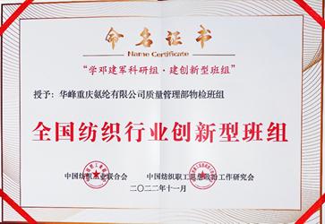 2023年3月20日,由中国纺织工业联合会主办的“学邓建军科研组·建创新型班组”——2022年全国纺织行业创新型班组工作经验交流会在山东省青岛市纺织谷隆重召开,会议发布了“2022年全国纺织创新型班组”的命名决定,公司检测中心物检班组荣获此荣誉,这是物检班组继获得2022年度“全国质量信得过班组”以来获得的又一殊荣。