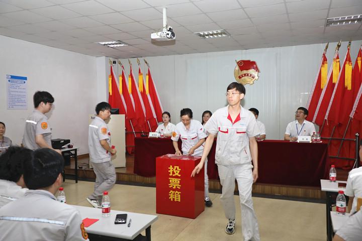 在激昂的《中国共青团团歌》中,大会拉开序幕。会议开始,华峰党委委员、团委书记王升同志宣读上级团委关于本次会议召开的批复文件。公司团委书记林勇代表第五届团委向大会作工作报告,各位团员代表认真聆听,表决通过工作报告。会上,大会通过《选举办法》、第六届团委委员候选人建议名单和监票人、计票人名单。