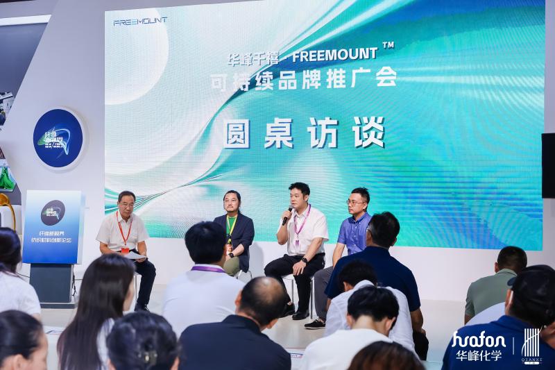 值一提的是,展会期间,华峰化学还联合中国化学纤维工业协会举行了中国纤维品牌联动创享汇品牌宣贯会、freemount?品牌推广会以及联合下游品牌分享原材料的绿色未来论坛。