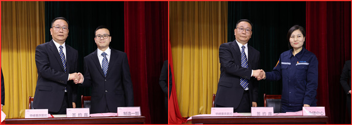 优秀员工代表郑众衡和肖杨分别上台作发言。随后,总经理与各部门签订年度绩效与HSE目标责任书,营销部经理吴楚昊和重庆制造五部经理陈亦跑分别作表态发言,表达了奋战新一年的信心与决心。